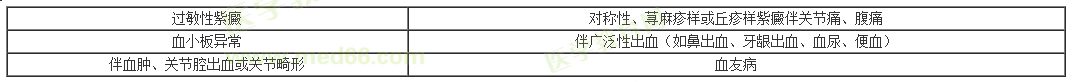 (3)伴随症状:有无腹痛、便血和血尿、关节痛,有无发热、面色苍白、乏力、鼻出血、牙龈出血。(3分)
