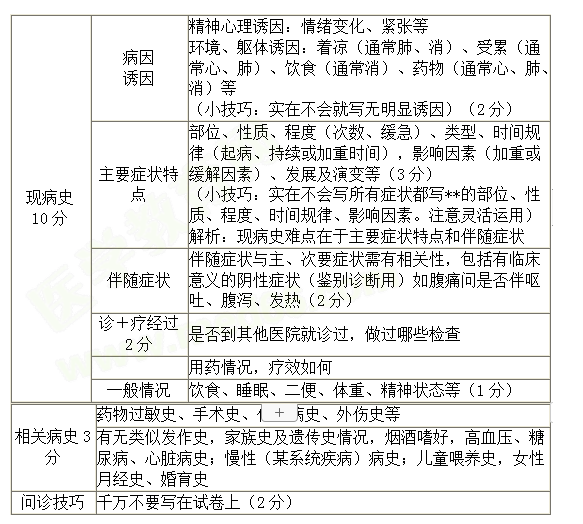 - · 临床病史采集答题模板/评分标准:腹痛4小时, 既往胆囊结石3年。