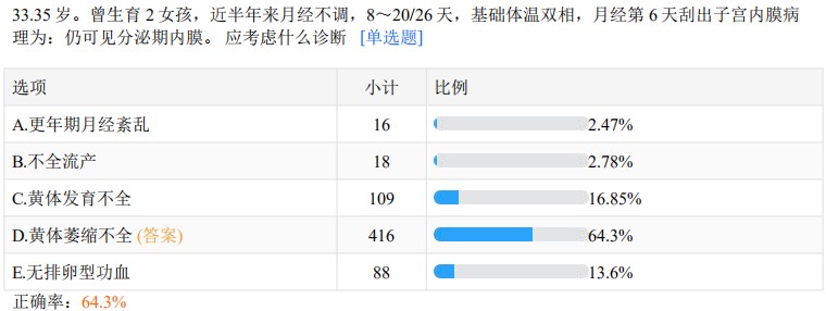 以上就是医学教育网关于“黄体功能不足【临床医师全国模考正确率64.3%】”的相关介绍,希望能够帮助到大家,更多资讯尽在医学教育网临床执业医师栏目!