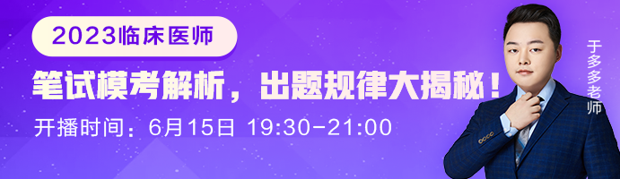想体验完整版模考试题?立即参与2023年临床执业医师笔试模考大赛测试>>,答题结束后,提醒各位考生及时关注网校于多多老师准备的《2023年临床执业医师考试模考试题解析》直播课,查看直播>>