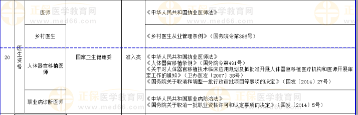 调整后,拟列入专业技术人员职业资格58项,其中,准入类31项,水平评价类27项。其中医师相关职务包括: