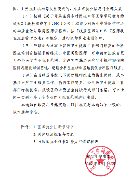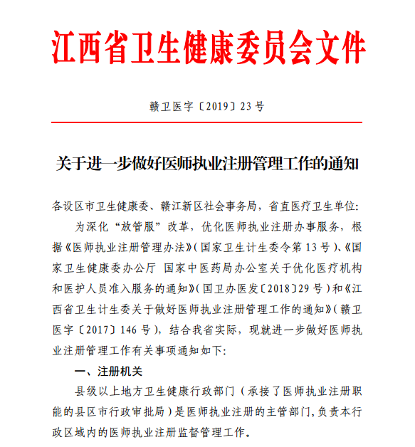 - · 关于江西南昌市全面实施医师、护士注册全程网办工作的通知