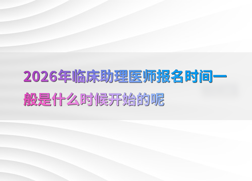 2026年临床助理医师考试报名预计在1月至2月进行,参考往年安排,如2025年为2月8日至2月21日,2024年为1月22日至2月4日。
