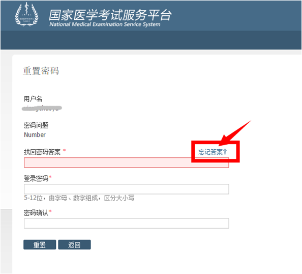 步骤3、如忘记密码且忘记密码答案及邮箱无法打开时,考生可向报名所在考点的卫生行政部门或医学考试管理机构提供注册时的身份证明材料申请密码重置。望广大考生相互转告,提前核验,避免查分时无法登陆造成不便。