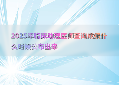 2025年临床助理医师综合考试成绩已于9月23日公布,考生可立即查询。