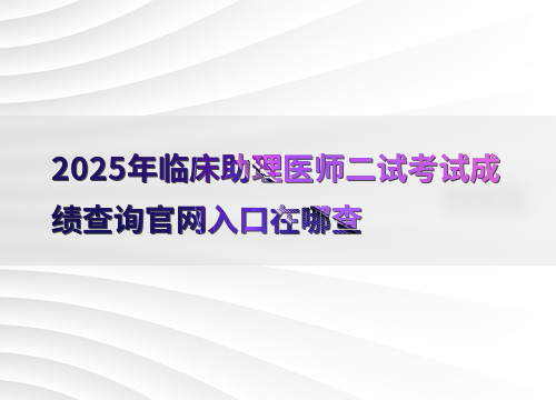 2025年临床助理医师二试成绩预计在12月初公布,参考近年数据(2024年11月30日、2023年12月8日),建议考生提前准备准考证和证件信息,以便第一时间查询。