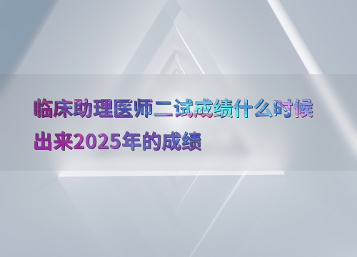 2025年临床助理医师二试成绩预计在12月初公布,参考近年时间:2024年为11月30日,2023年和2022年均为12月8日,2021年为12月15日。