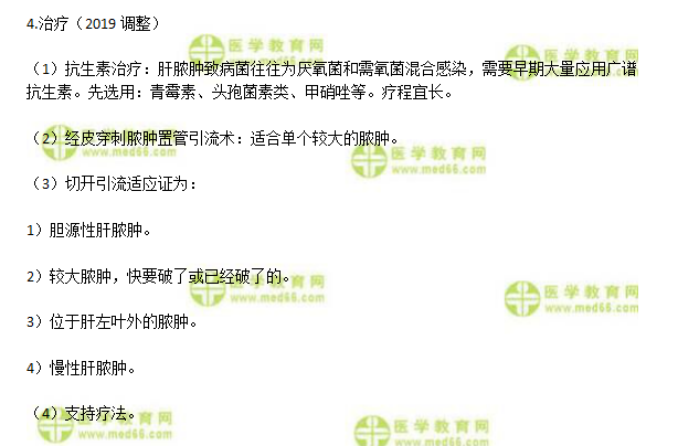 2.C【答案解析】单个较大脓肿可以用经皮肝穿刺脓肿置管引流术医学|教育网。