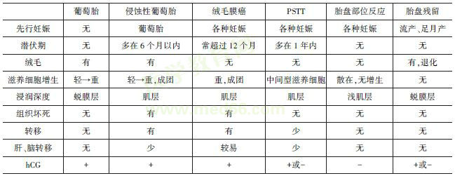 葡萄胎、侵蚀性葡萄胎、绒癌与其他疾病的鉴别