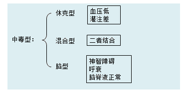 4.中毒型:脑型(神智障碍;呼衰)、休克型(血压低,灌注差)、混合型。