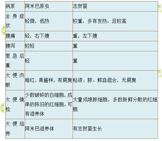 3.普通型:粘液脓血便,里急后重,腹痛,发热。