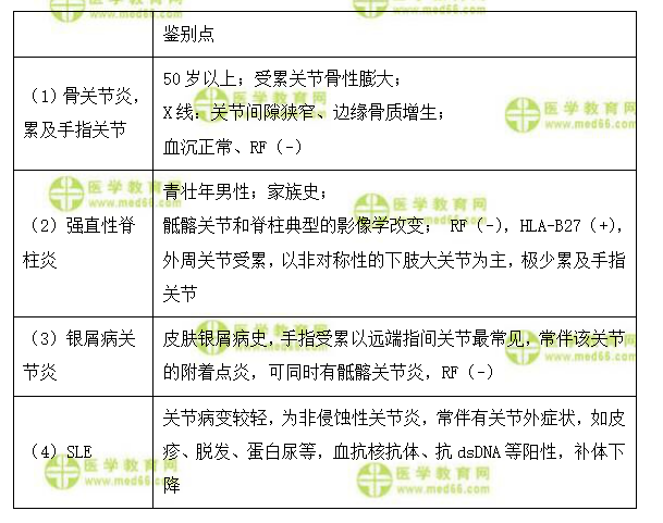 以上关于“ 风湿免疫系统:类风湿关节炎的鉴别诊断”的文章由医学教育网编辑整理搜集,希望可以帮助到大家,更多的文章随时关注医学教育网临床助理医师考试栏目!