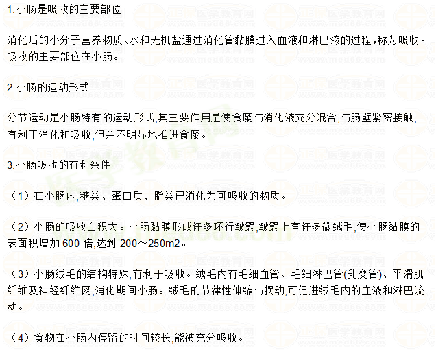 关于临床执业助理医师生理学中“小肠的吸收功能”相关考点大家都想了解,为帮助大家备考,在此医学教育网小编为大家整理如下内容: