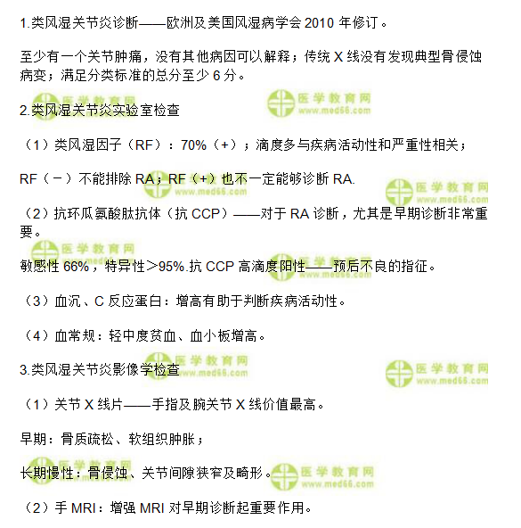 临床助理《风湿免疫系统》考点:类风湿关节炎的诊断及鉴别