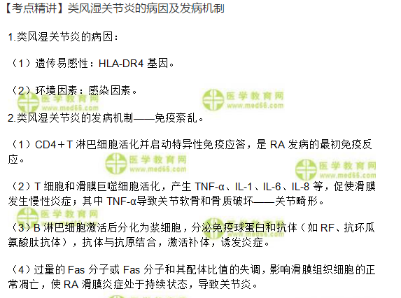 临床助理《风湿免疫系统》考点:类风湿关节炎的病因及发病机制