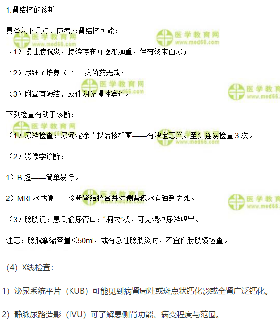关于临床助理医师《泌尿系统》:肾结核的诊断考点,相信备考2020年临床执业助理医师考试的考生都在关注,为方便大家学习,在此医学教育网小编为大家整理如下内容: