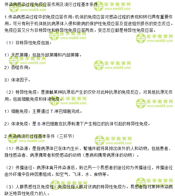 临床助理考试资料“传染病感染过程免疫应答作用及流行过程基本条件”
