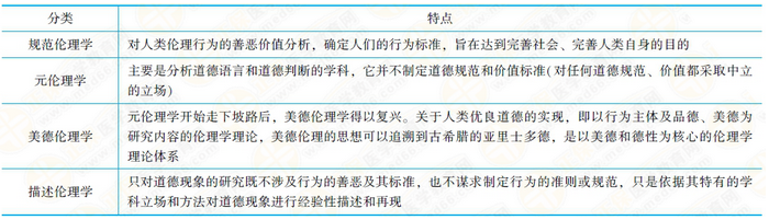 3.伦理学分为规范伦理学、元伦理学和描述伦理学三种类型。