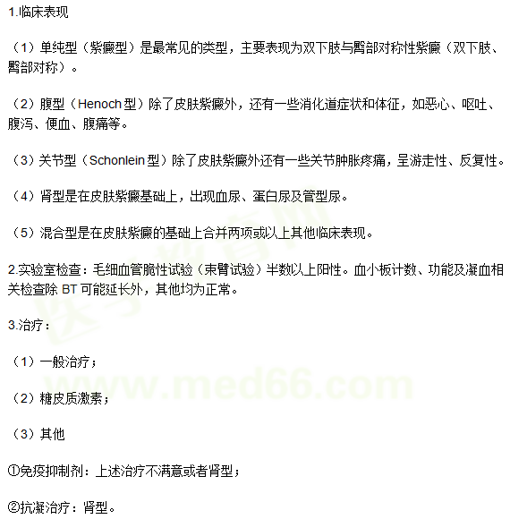- · 2021年临床执业助理医师考试常见知识点记忆:【血液系统疾病】过敏性紫癜