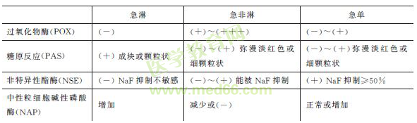 (2)急性白血病与急性再障鉴别:急性再障表现为三系减少,但急性再障不会出现胸骨压痛和肝、脾淋巴结肿大,骨髓检查容易鉴别。