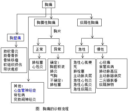 可以由心血管疾病、呼吸系统疾病、纵隔内其他器官或脊柱病变引起。