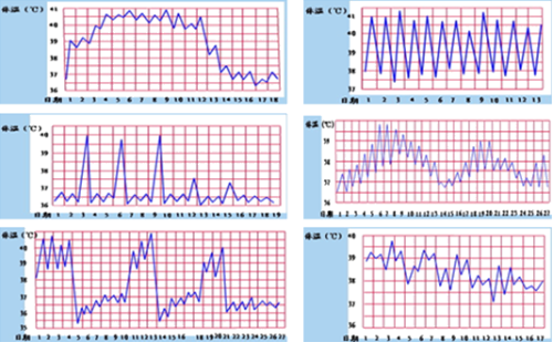 弛张热 | 也称败血症热型。体温常>39℃,波动幅度大,24小时内波动范围超过2℃ | 败血症、风湿热、重症肺结核、化脓性炎症 |