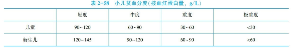 我国小儿血液学会议暂定:新生儿Hb<145g/L,1~3个月Hb<90g/L,4~6个月Hb<100g/L者为贫血。