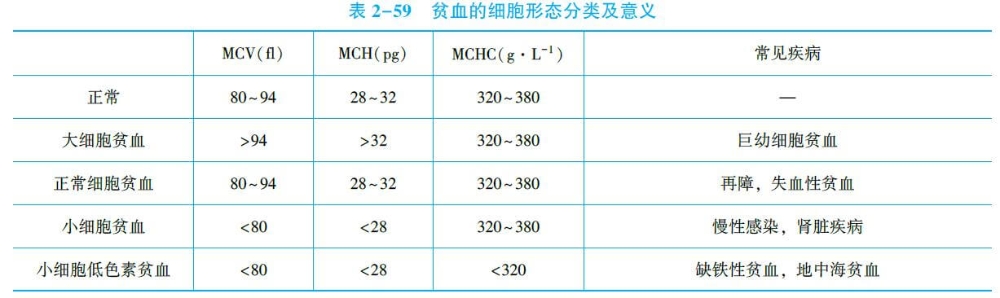 根据红细胞数、血红蛋白量和红细胞比容计算红细胞平均容积(MCV)、红细胞平均血红蛋白量(MCH)和红细胞平均血红蛋白浓度(MCHC)的结果,将贫血分为四类。