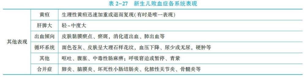 无特异性,表现为反应差、嗜睡、体温低或体温波动、不吃、不哭、不动、体重不增或生长缓慢等症状(“五不一低下”)。