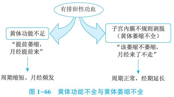 1.病因及病理生理 由于下丘脑-垂体-卵巢轴调节功能紊乱或溶黄体机制失常引起黄体萎缩不全,内膜持续受孕激素影响,以致不能如期完整脱落。