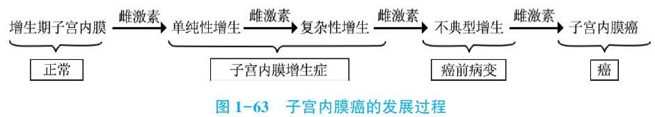 1.内源性雌激素增高 如无排卵性功血、多囊卵巢综合征、功能性卵巢肿瘤等,此外初潮早、绝经晚、不孕、少产也会增加子宫内膜癌的发病率。