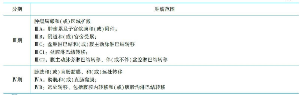 目前多采用FIGO制订的手术-病理分期。腹水细胞学阳性应单独报告,但不改变分期。