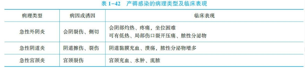发热、疼痛、异常恶露为产褥感染三大主要症状。按感染部位分为下表的类型。