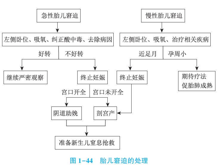 应针对病因,视孕周、胎儿成熟度及胎儿窘迫程度决定处理。