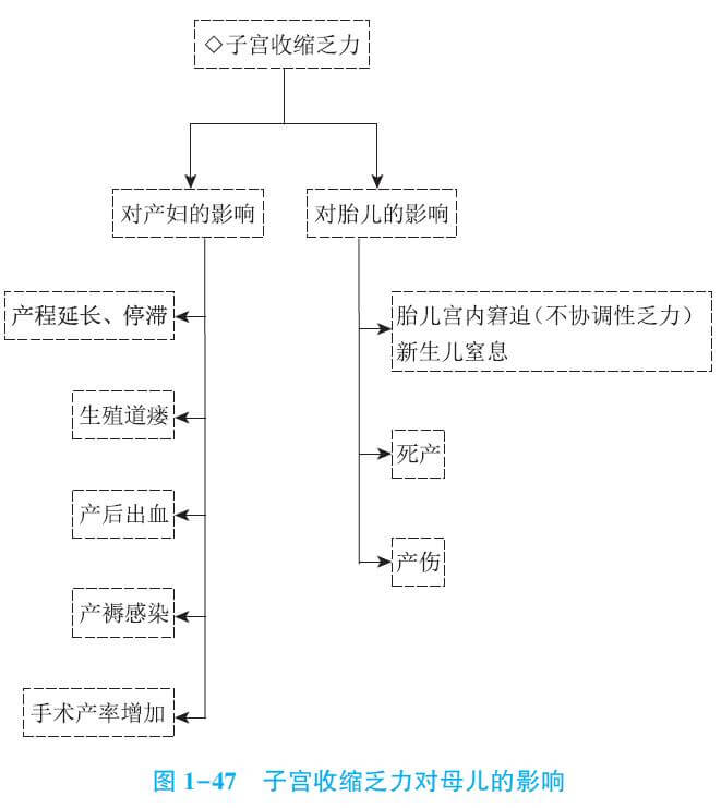 协调性宫缩乏力造成胎头内旋转异常使产程延长,手术产率增高;不协调性宫缩乏力不能使宫壁完全放松,易发生胎儿窘迫,甚至胎死宫内。