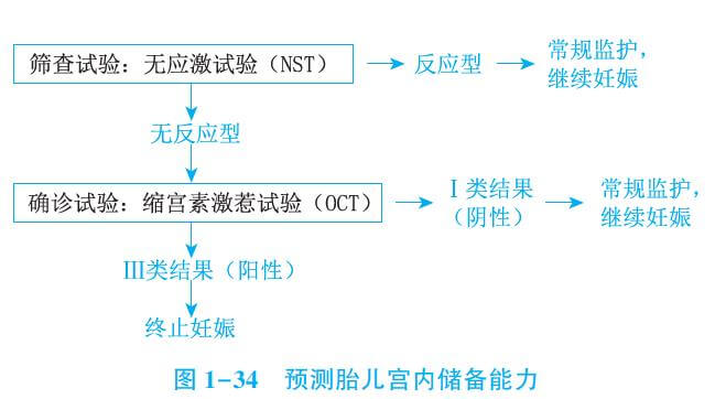 包括无应激试验(NST)和缩宫素激惹试验(OCT)两种方法,NST是OCT的筛选试验。即:若NST结果异常,再通过OCT确诊。