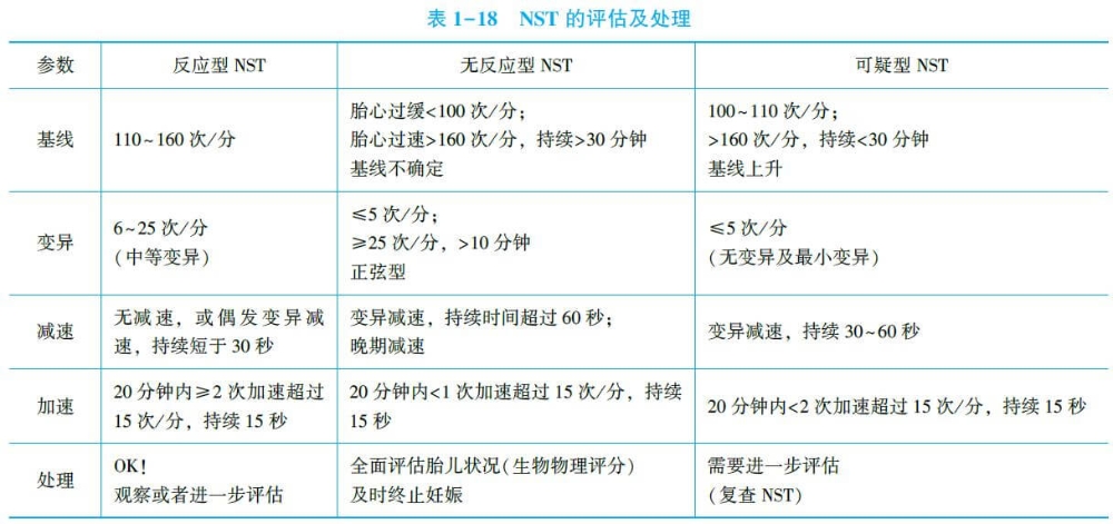 试验方法:孕妇取半坐卧位,连续监测20分钟胎心率。若胎儿在睡眠中,可延长监测时间为40分钟或催醒胎儿。NST方法简单、安全、可在门诊进行。