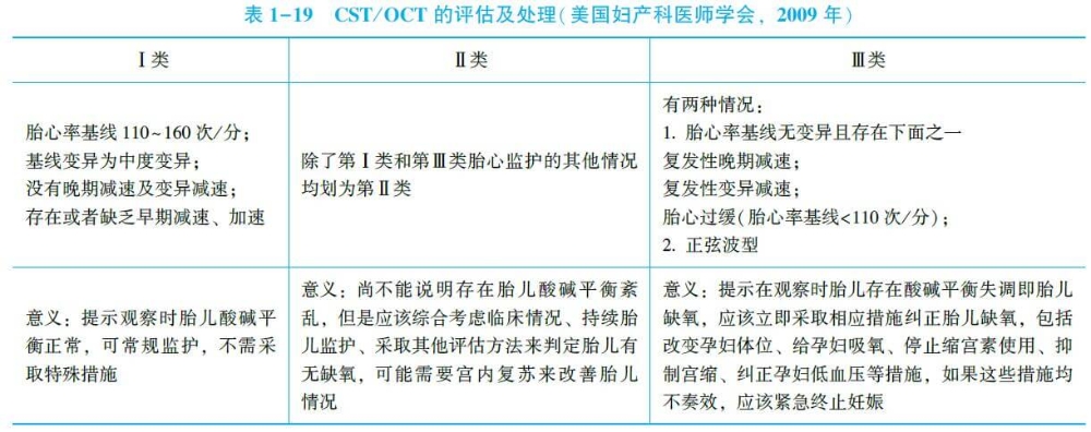 2)缩宫素激惹试验(OCT):又称为宫缩应激试验(CST),其原理为诱发宫缩,并用胎儿监护仪记录胎心率变化,了解胎盘于宫缩时一过性缺氧的负荷变化,测定胎儿的储备能力。