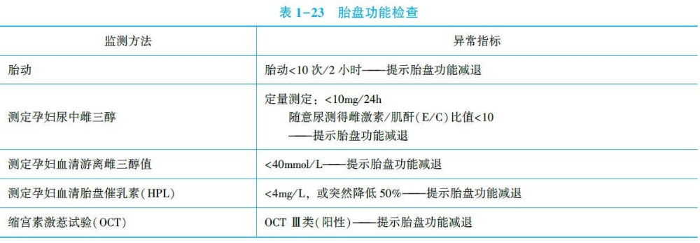 1.定期产前检查 测量宫底高度或子宫长度和腹围,胎动计数,胎心监测。B型超声检查测胎头双顶径值,并判定胎位及胎盘位置、胎盘成熟度。