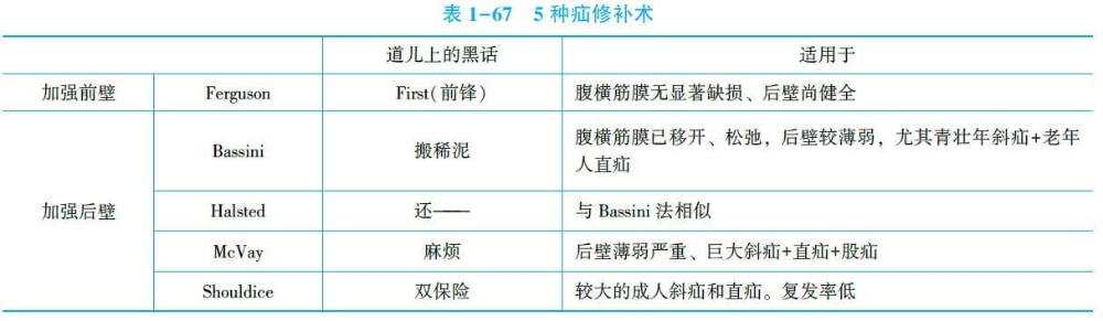 3.疝修补术 疝囊高位结扎后,加强或修补薄弱的前壁或后壁,治疗更彻底。
