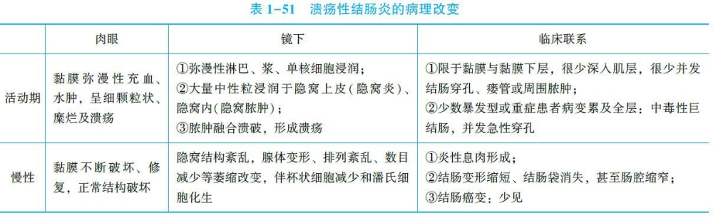 (1)腹泻:见于绝大多数患者。机制:炎症导致大肠黏膜对水钠吸收障碍,以及结肠运动功能失常。粪便中的黏液脓血为炎症渗出、黏膜糜烂及溃疡所致。