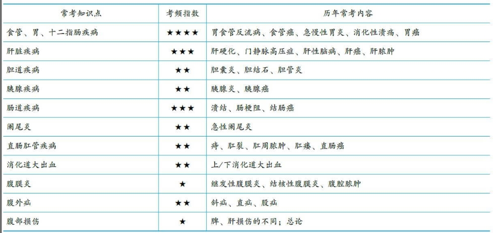 消化系统是历年考试题量最多的单元,因此,不存在取舍问题,大纲要求的范围均为重点内容。“擒贼先擒王”,首先应该掌握的是以下10大点: