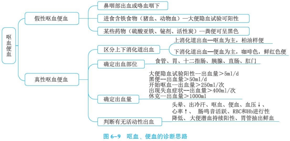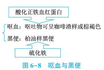 注意:猪肝、动物血、铁剂、铋剂、炭粉及中药等药物也可使粪便变黑,但一般为灰黑色无光泽,且隐血试验阴性,可供鉴别。
