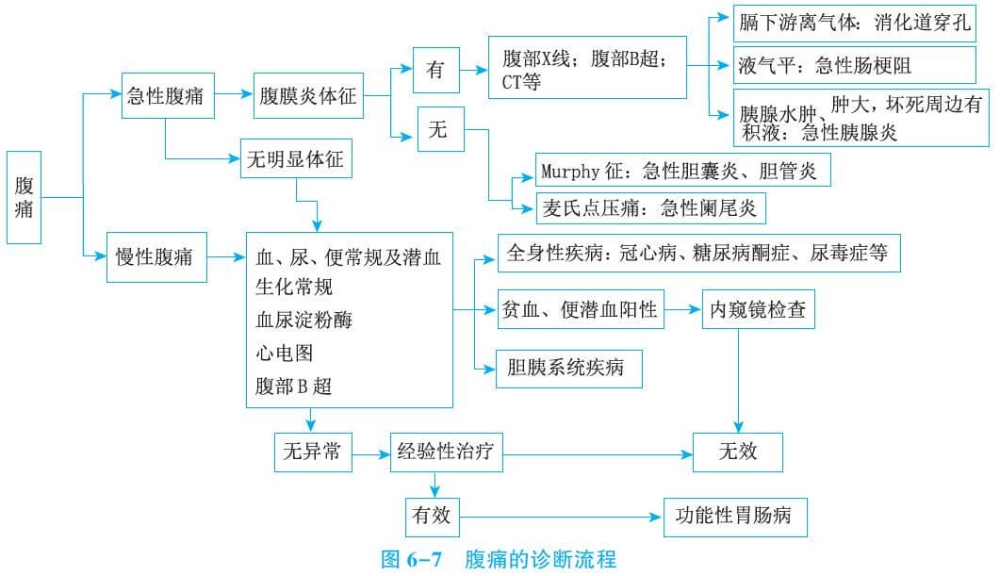 1.内脏性腹痛 部位不明确,感觉模糊,多为不适、钝痛、灼痛;常伴恶心、呕吐、出汗等其他自主神经兴奋症状。