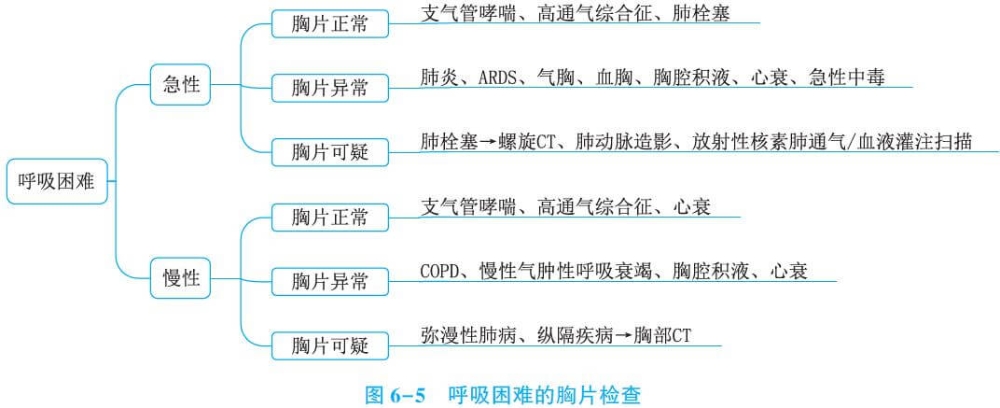 3.混合性呼吸困难 常见于重症肺炎、大面积肺栓塞、弥漫性肺间质疾病、大量胸腔积液、气胸等。