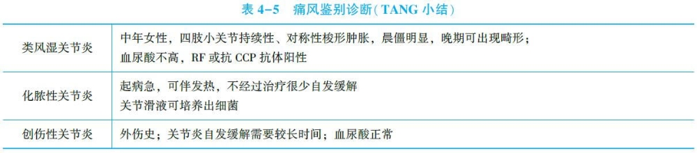 (3)痛风诊断金标准:关节腔穿刺获得的滑液或关节镜下获得的滑膜组织或痛风石标本,经偏振光显微镜发现呈针形的尿酸盐结晶。