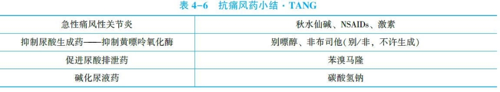 (1)秋水仙碱:治疗急性痛风性关节炎的有效药物。小剂量(1.5mg/d)有效且不良反应少。