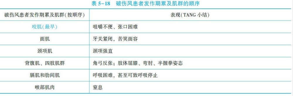 3.发作期 横纹肌按以下顺序发生持续性收缩和阵发性痉挛: