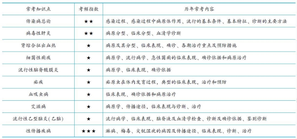 传染病内容庞杂,涉及的疾病很多。考虑大家复习的时间和精力情况,不建议在本部分花费过多时间。所以,必须抓住重点。