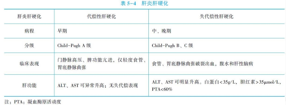 (4)慢性肝衰竭:在肝硬化基础上,肝功能进行性减退,导致以腹水或门脉高压、凝血功能障碍和肝性脑病为主要表现的慢性肝功能失代偿。